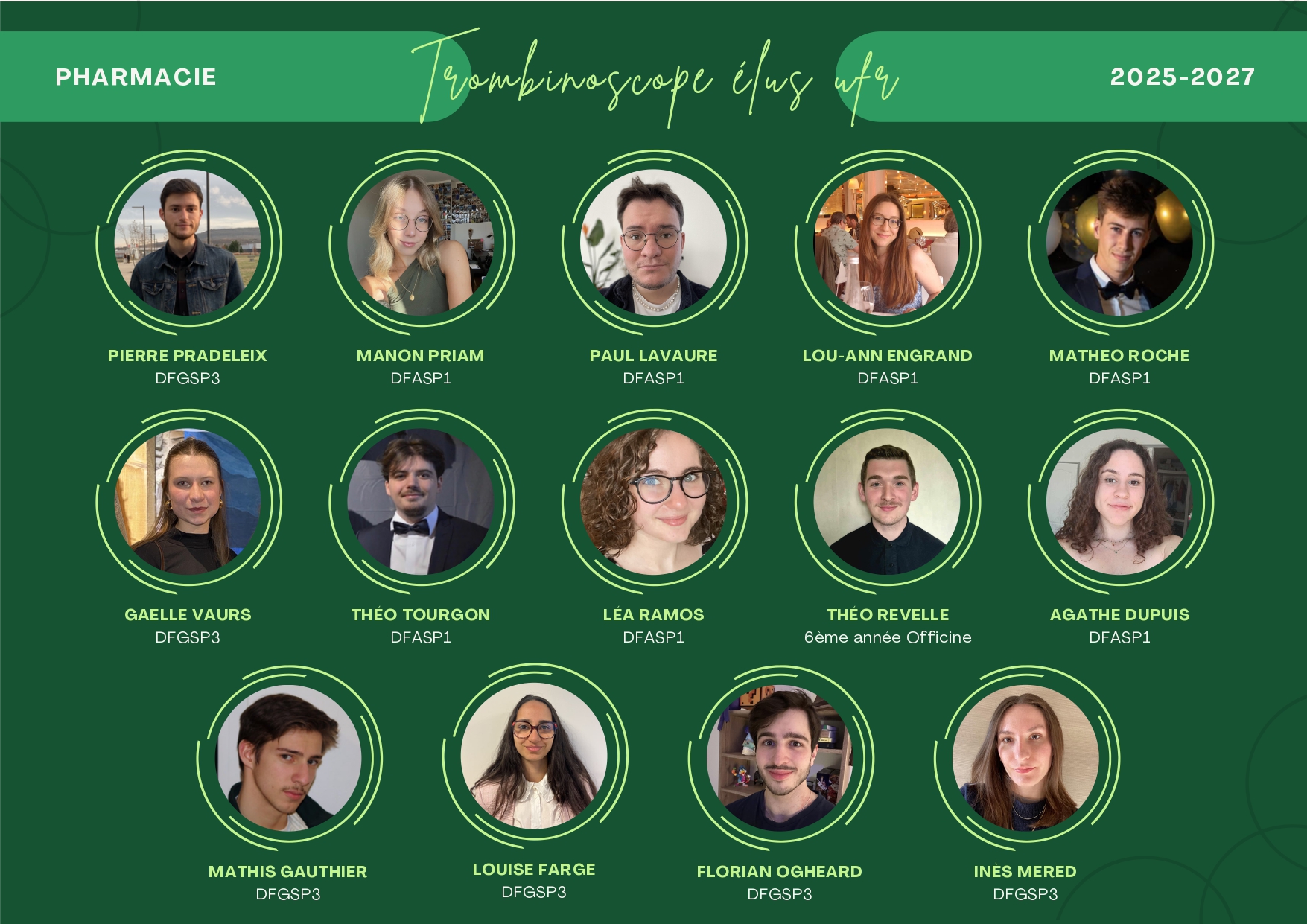 Trombinoscope des élus 2025-2027 à l'UFR de Pharmacie